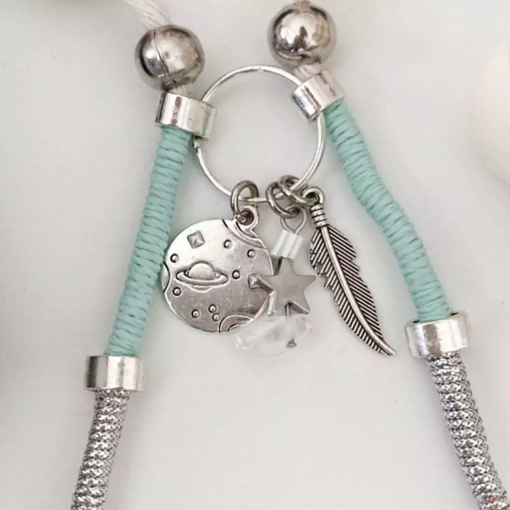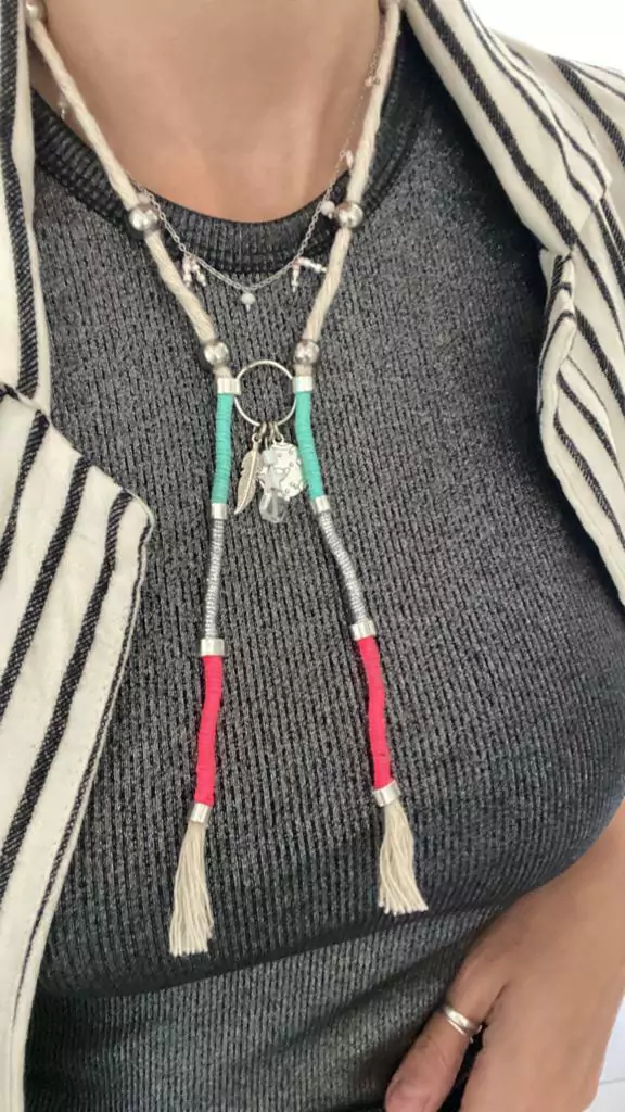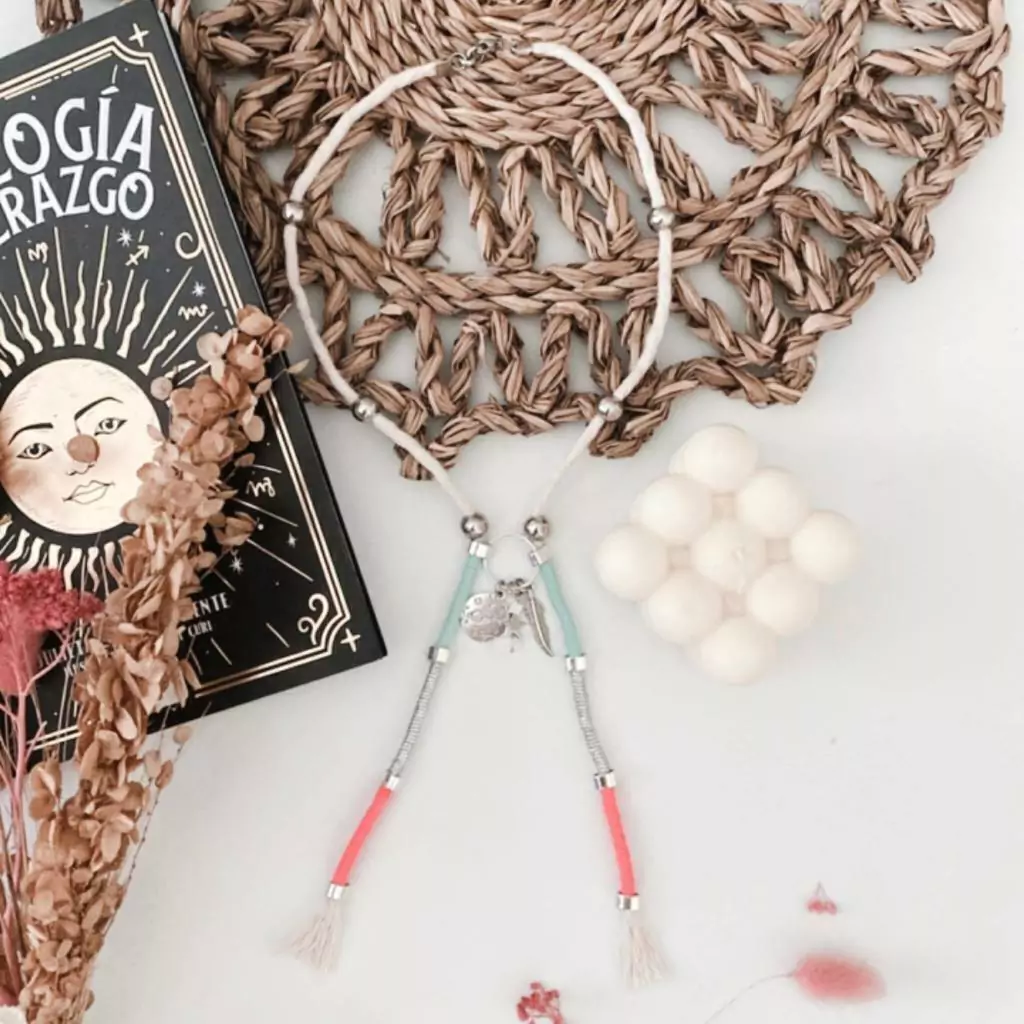 Hermoso, original y colorido collar con hilo de algodón cadena y mosquetón de acero quirúrgico, dijes de fundición, cristales y cancherismo por todos lados!