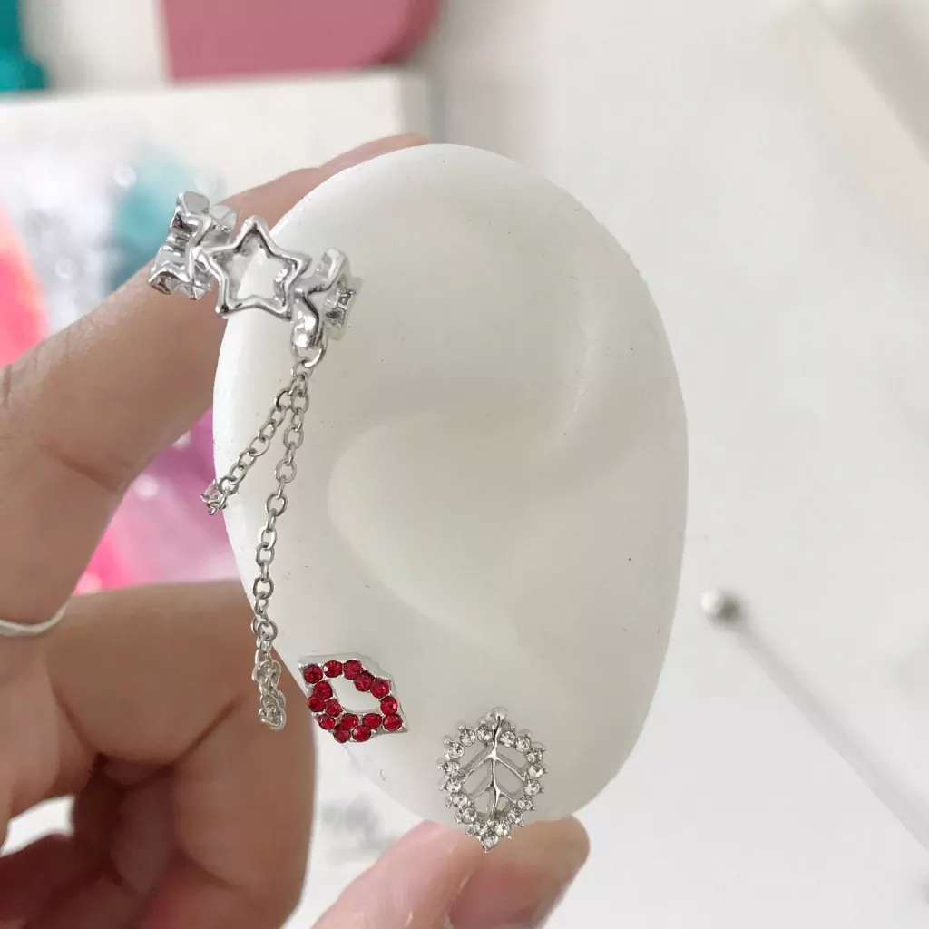 Hermosos aros miniatura con forma de boca y cubic rojos, son de acero quirúrgico y muy cancheros. Se vende el par.