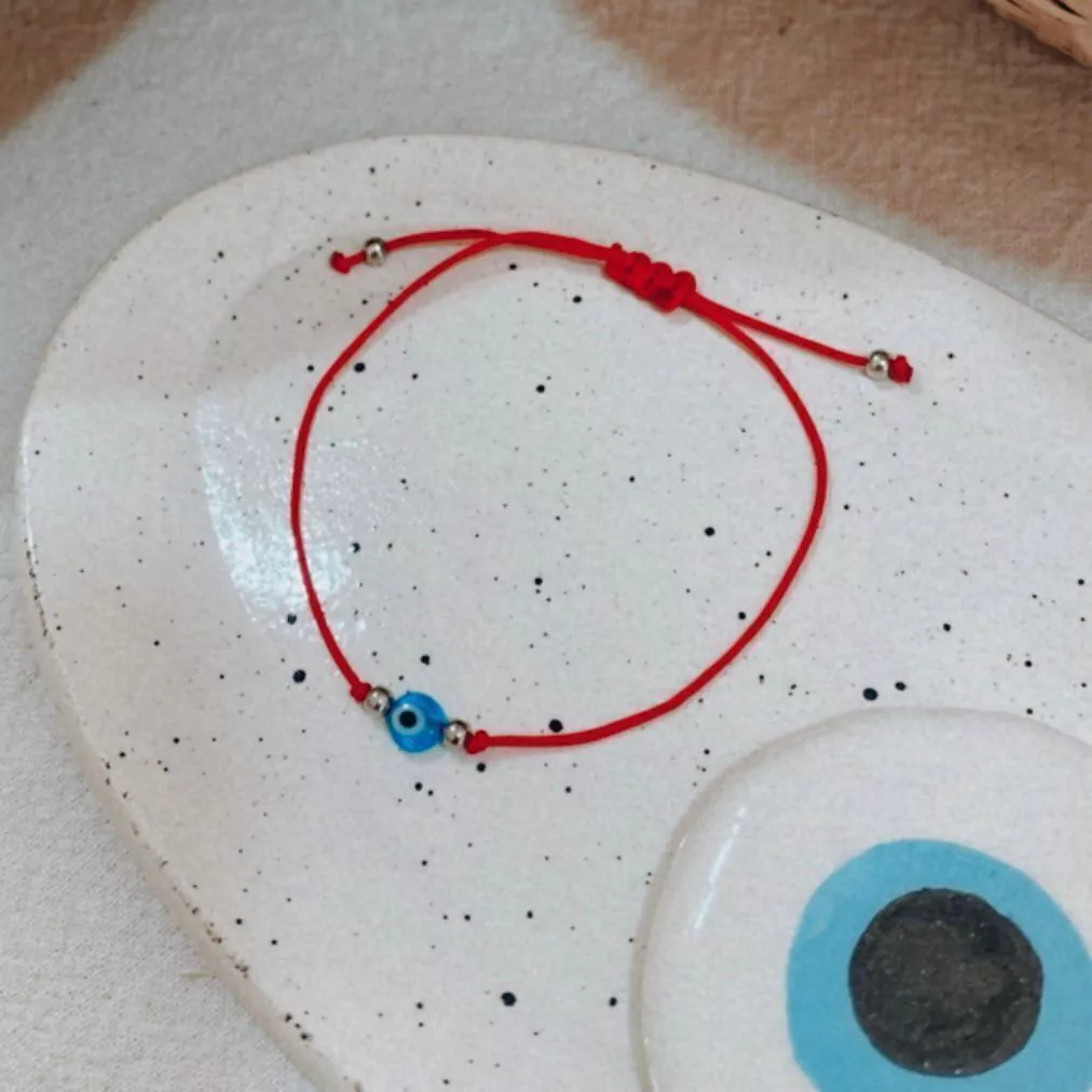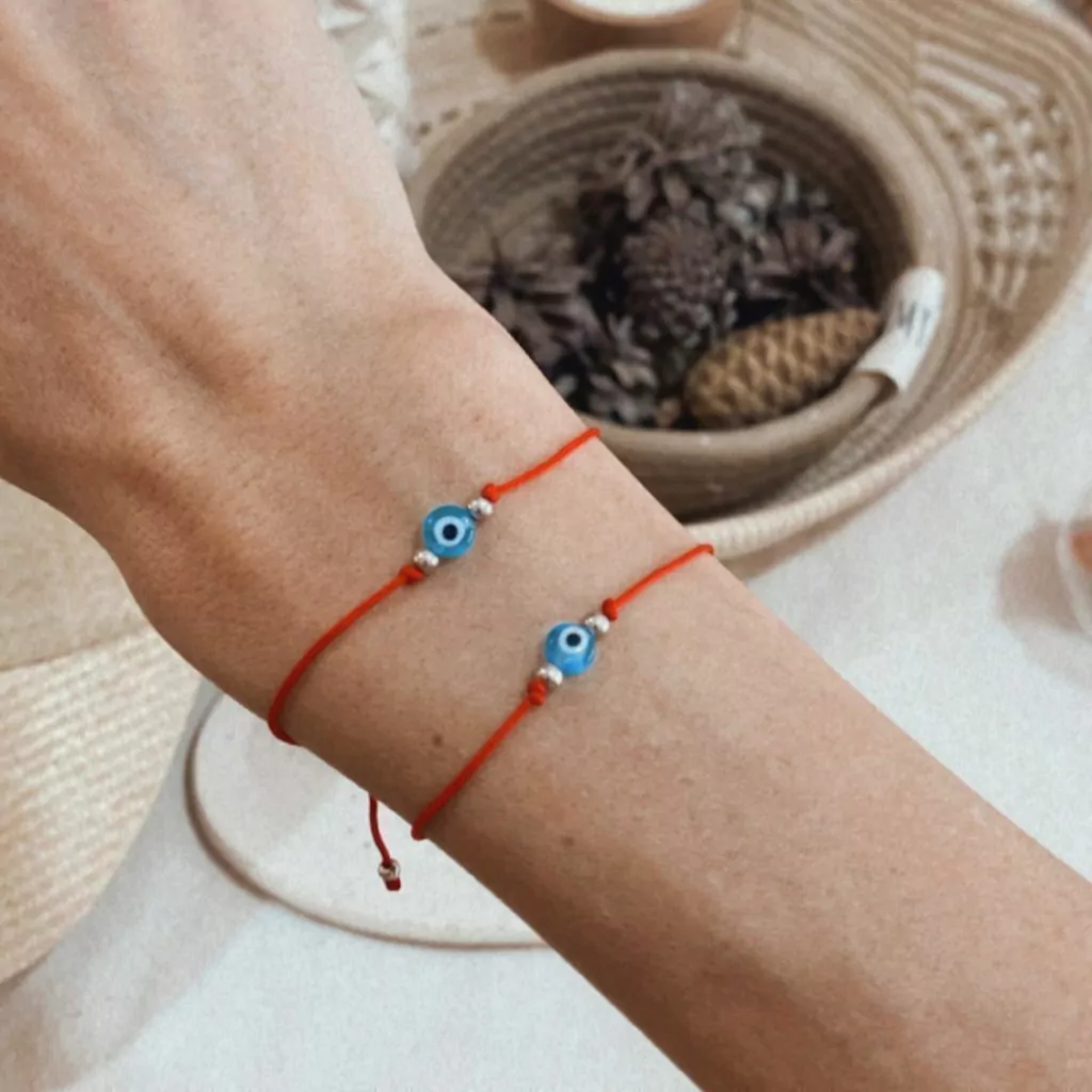 Pulseritas protectoras rojas con hilo y ojito importado, con sistema de nudos y cierre macrame ajustable. Ideal para niñxs, bebés y adultos (tenemos los tres talles), especificar al comprar.