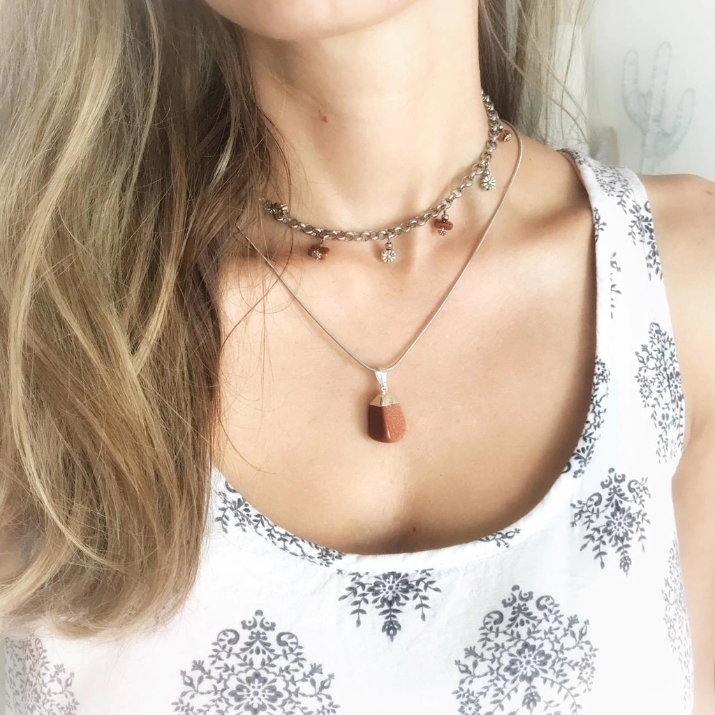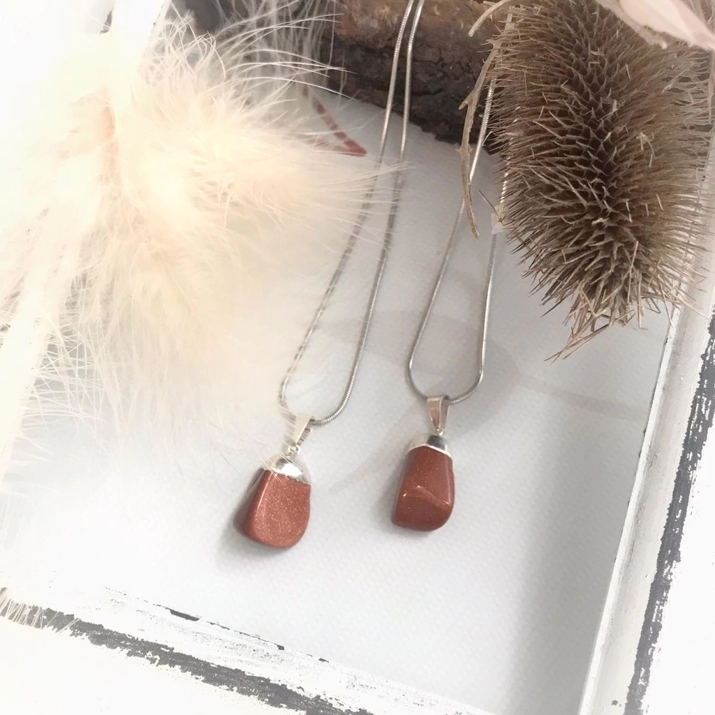 Hermoso collar con dije de Cristal Lluvia de Oro engarce de plata y cadena cola de ratón de acero quirúrgico.
