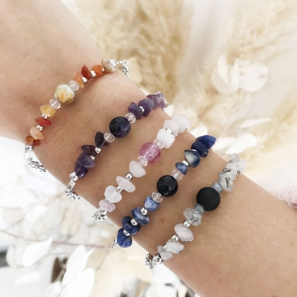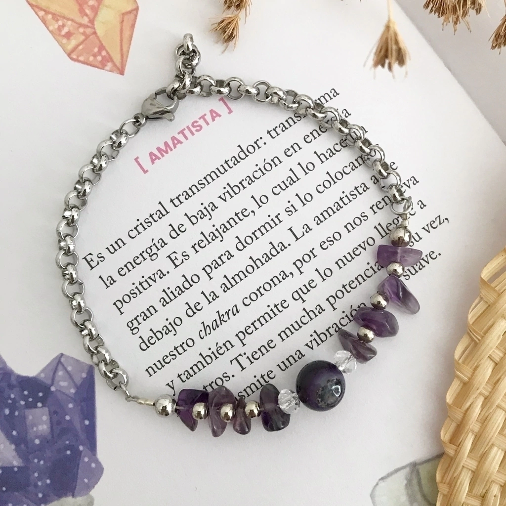 Hermosas pulseras de acero quirúrgico y cristales, ideales para llevar siempre con vos y que su magia te ayude en algo específico que necesites. Grandes aliadas para todos los días. Medidas: *Largo: 19cm aprox.
