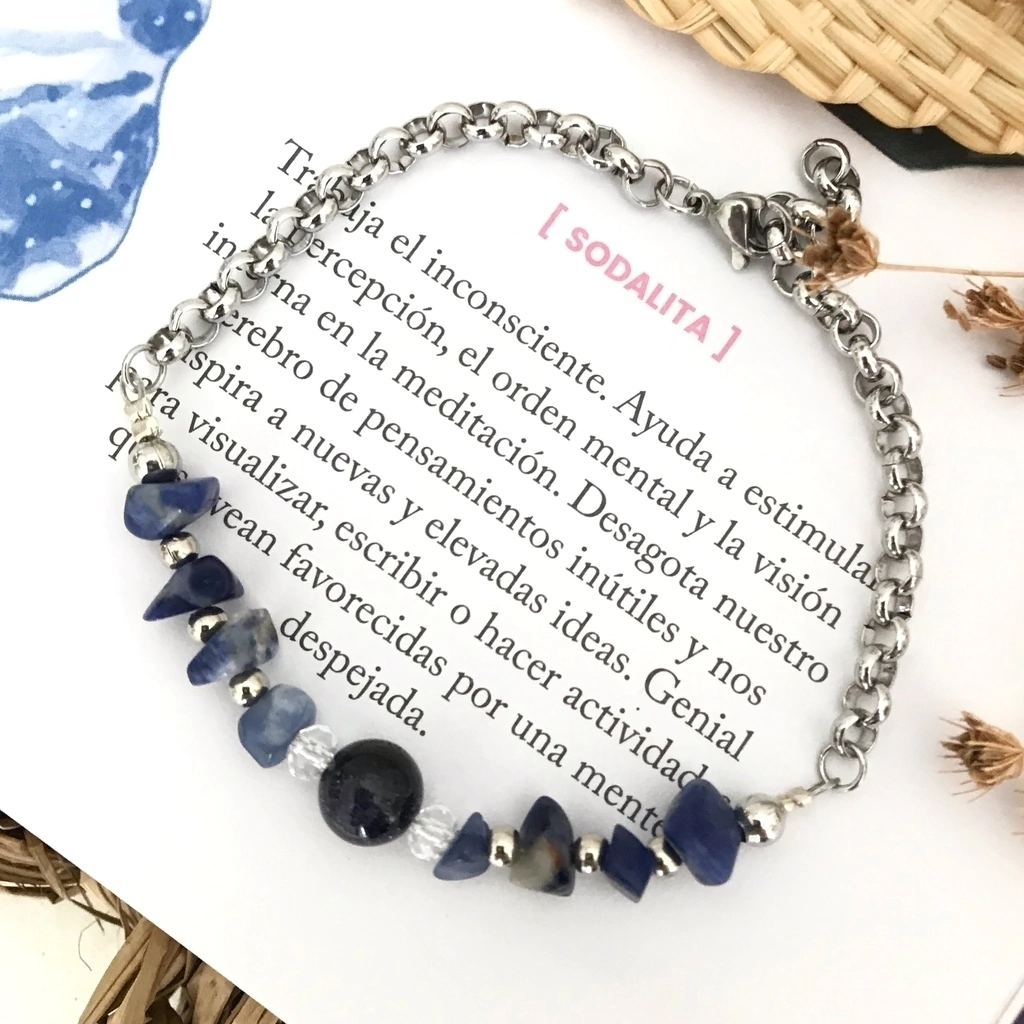 Esta piedra es muy conocida por su capacidad de curación, meditación y sabiduría. Esta es una buena piedra para la comunicación en general por uno mismo y por escrito. Se utiliza para expresar la lógica y las ideas, debido a su conexión con el Chakra de la Garganta. También se utiliza en el Chakra del Entrecejo debido al hecho de que puede acceder a finos niveles de información intuitiva y promover la comprensión de estos conceptos. También se usa para mejorar las relaciones comunitarias. Te ayuda a ser más objetivo y menos crítico acerca de las maneras de hacer frente a la existencia. Es una piedra asociada con el estudio. Esta piedra se debe usar o ser llevada encima como una piedra de tocar durante un largo periodo de tiempo con el fin de aprovechar sus beneficios completos.